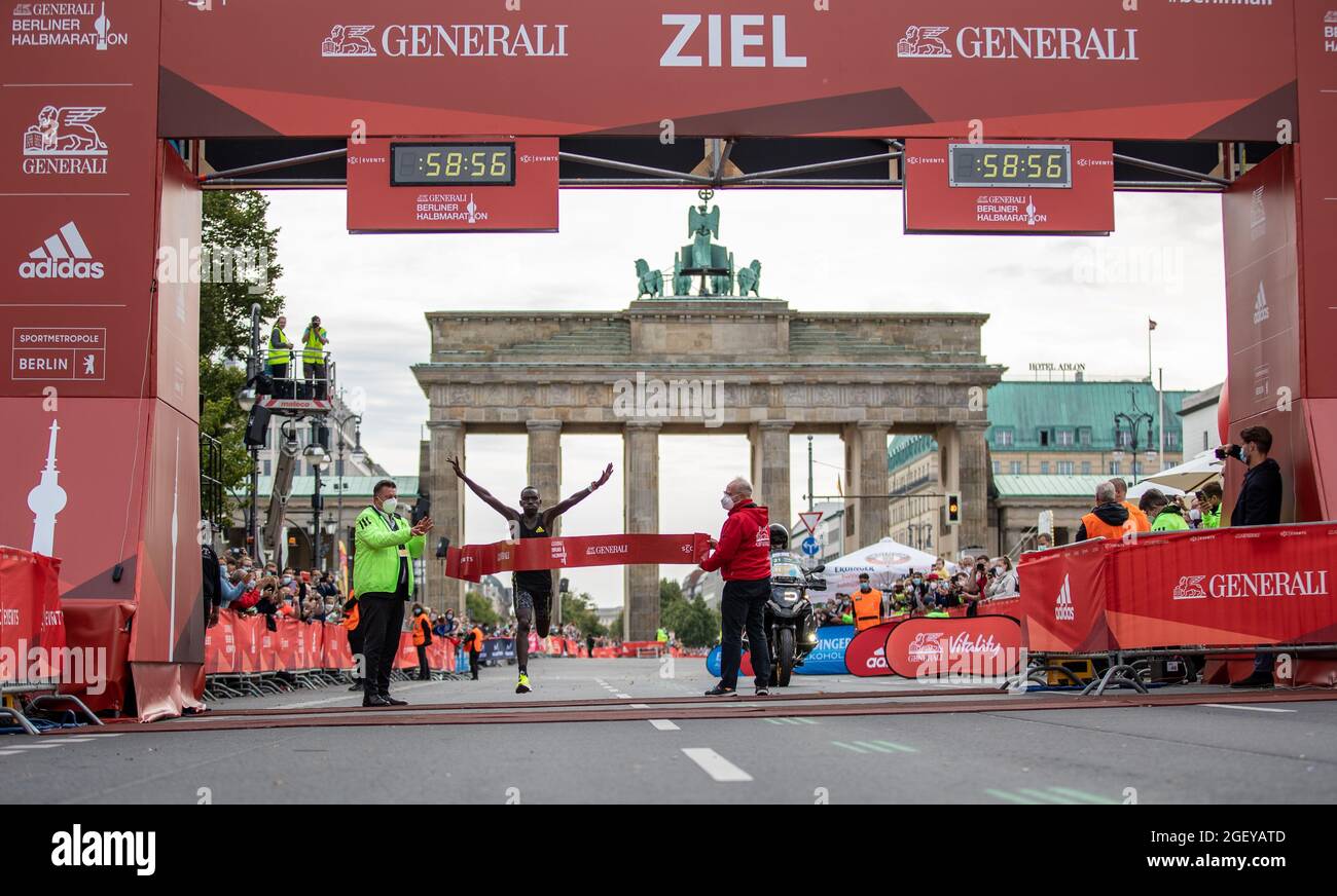 Berlin Germany 22nd Aug 2021 Athletics Generali Berlin Half Marathon 2021 Felix Kipkoech From Kenya Wins The Berlin Half Marathon With An Annual World Best Time Of 58 57 Minutes Credit Andreas Gora Dpa Alamy